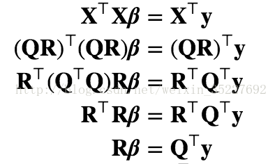 直接求这个公式的话,如果x的矩阵是特别大的 那么 x的转置矩阵 乘以 x 计算量会非常的大, 所以我们需要通过QR矩阵分解:(听说我们学校的教授 neil大神,对世界矩阵分解做出了一些贡献,。。现在个人拿到的研究经费已经有半个亿了,最近又被google 挖过去带一个新部门。。所以, 同学们 学好数学,,,,)