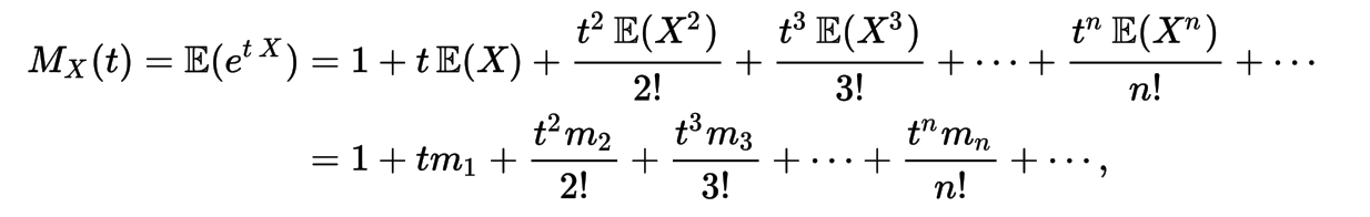 前提是这个期望值存在。而且事实上,矩母函数确实并非一直都存在。矩母函数之所以称为矩母函数,就在于通过它的确可以生成随机变量的矩。根据麦克劳林公式,