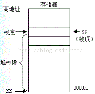 一开始sp是指向高地址的,然后每压进去一个字,就sp=(sp)-2,向地地址方向伸展,压栈和出栈只能是字,没有字节,所以sp要么加2,,要么减2。理解栈这边很简单,你们看我之前写的8086提供的栈机制博客就能理解,这里不在重复。