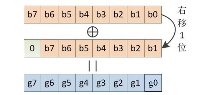 n位的格雷码:Gn,Gn-1,Gn-2。。。G2,G1,G0;