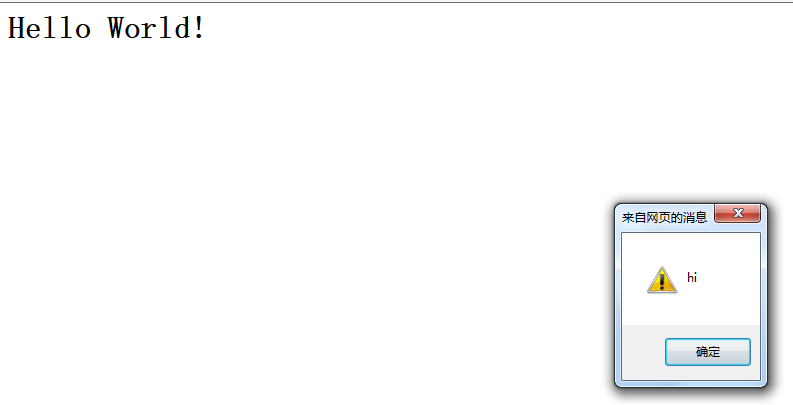 1 <html> 2 <body onLoad="alert('hi')"> 3 <script language="JavaScript"> 4 document.write("<h1>Hello World!</h1>"); 5 </script> 6 </body> 7 </html>