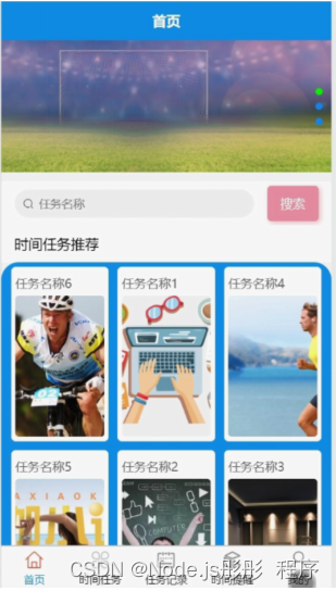 用户登陆app后,可以对首页、时间任务、任务记录、时间提醒、我的等功能进行操作,如图5-3所示。