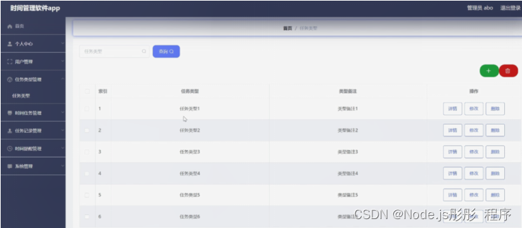 任务类型管理,在任务类型管理页面可以对索引、任务类型、类型备注等内容进行详情,修改或删除等操作,如图5-12所示。