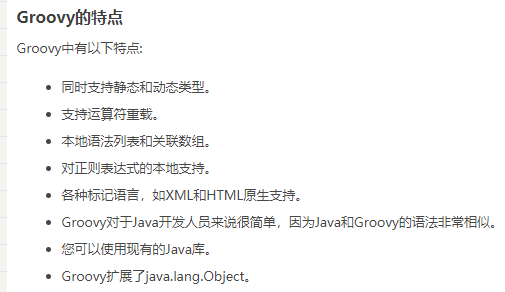 Groovy是一个功能强大的、动态的基于JVM的脚本语言。强大在哪里,请看下图。更详细的请参考wiki。