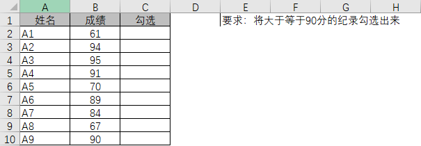 If Cells(rs, 2) >= 90 Then Cells(rs, 3) = "√"