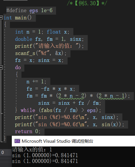 // printf("sin(%f)=%0.6fn", x, sinx);