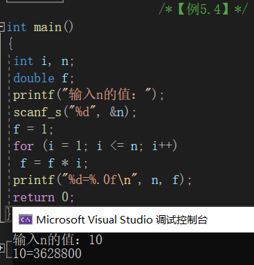 printf("%d=%.0fn", n, f);