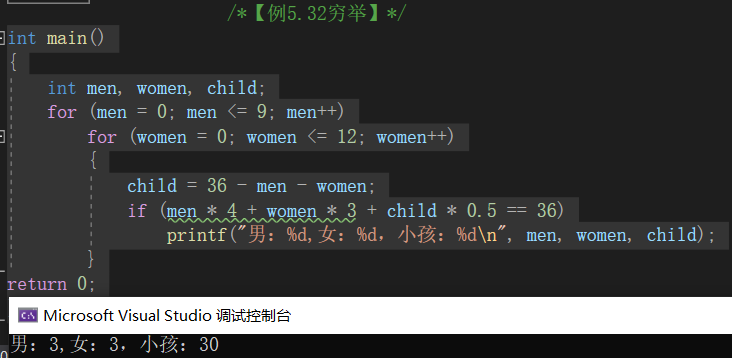 // printf("男:%d,女:%d,小孩:%dn", men, women, child);