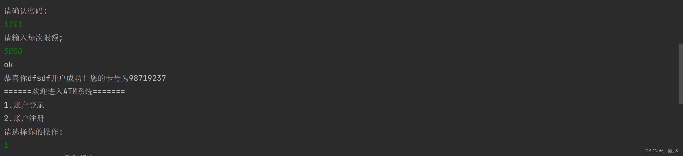 以上就是活力鸡最近收集整理的关于Java ATM系统课程设计完整代码详细注释,注册,登录,查询,取款·,转账,修改密码 等功能 。直接上代码的全部内容,更多相关Java内容请搜索靠谱客的其他文章。