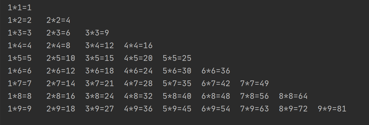 print(f'{i}*{j}={i*j}', end='t')