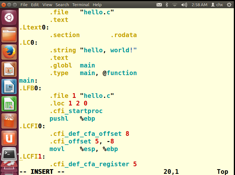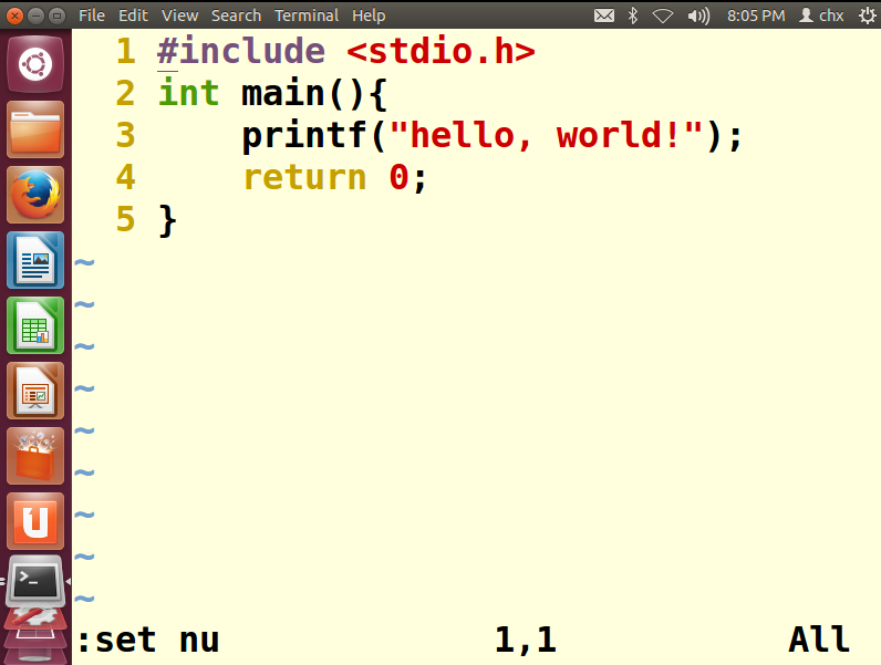 第一步:使用vim编写一个简单的C程序helloworld.c