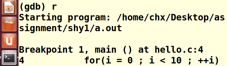 5>执行调试,输入r [args] 开始调试(args为可选参数)