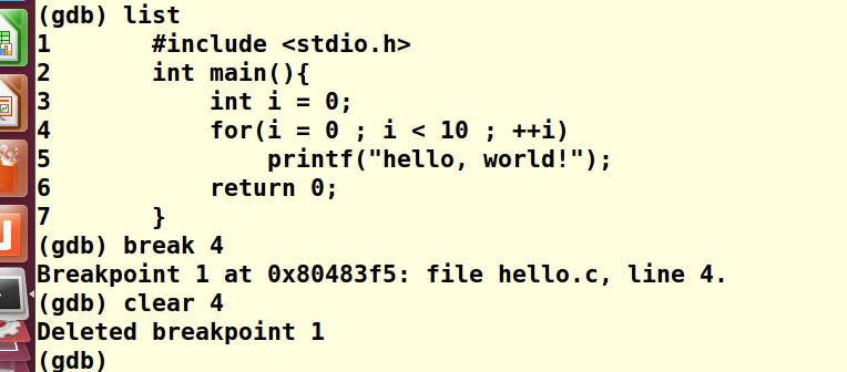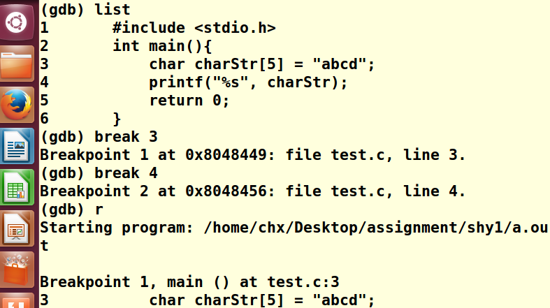 gdb命令 list显示代码 break n 在代码第n行添加断点