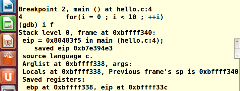 info register(显示寄存器信息) i f / info register (不是if 是 i f)