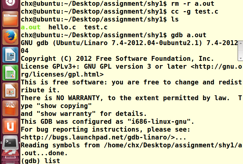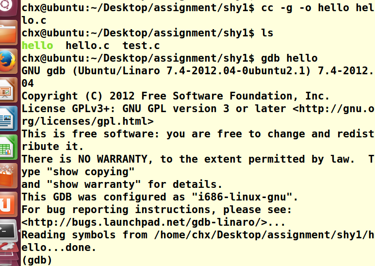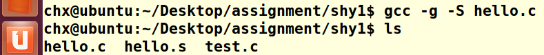 之后使用cc -g指令重新编译hello.c(重复步骤1-4)