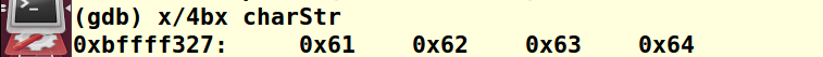 x / 4bt &charStr[0] (当然这里写成charStr效果相同)