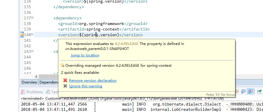 以上就是自信银耳汤最近收集整理的关于maven配置文件中警告This expression evaluates to 4.2.4.RELEASE The property is defined in cn.的处理方法的全部内容,更多相关maven配置文件中警告This内容请搜索靠谱客的其他文章。
