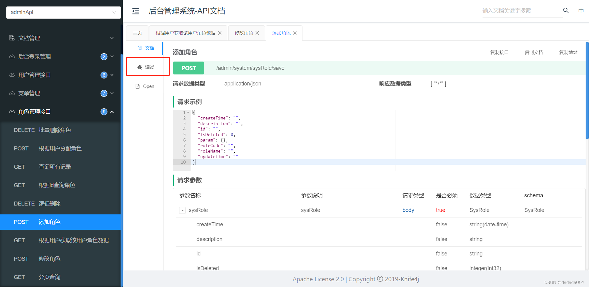 @Api(tags = "角色管理接口")
