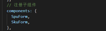 第四步: 注册局部组件,在<script>里面,与methods同级