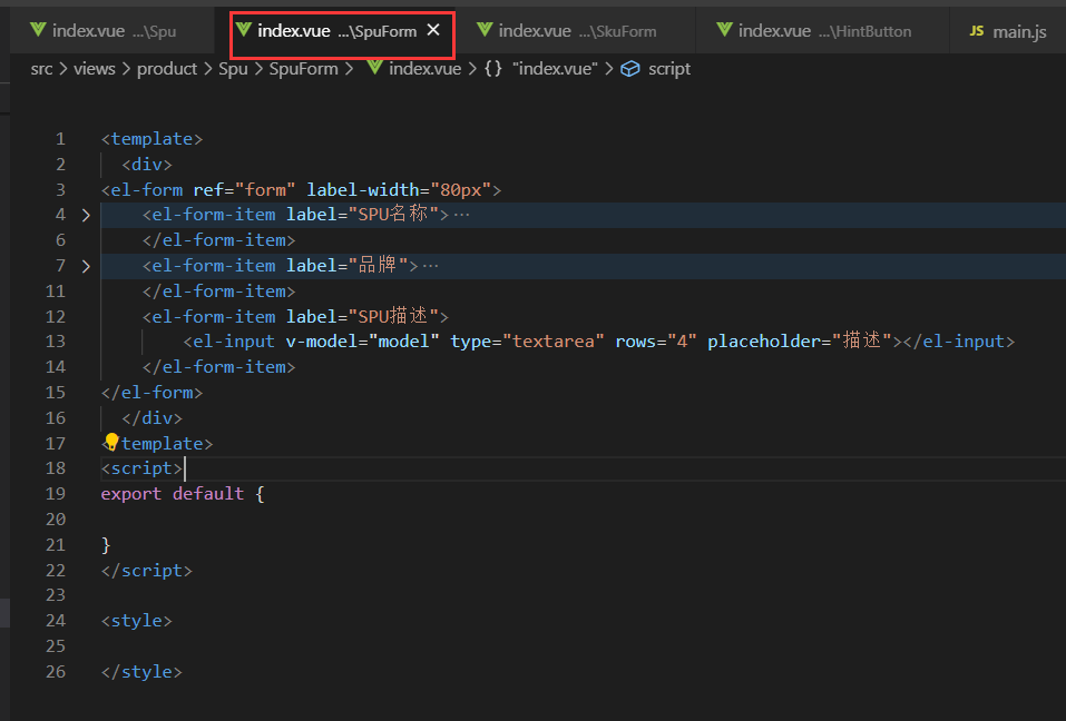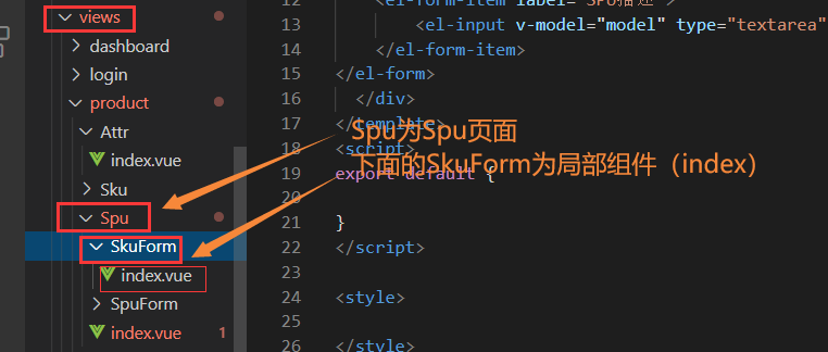 第二步: 在局部组件的index.vue中写上组件相应的代码