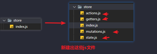 默认生成的store文件夹下,只有一个index.js文件,如果我们把所有的方法、变量全都写在这一个文件下,就会变得很臃肿,难以维护