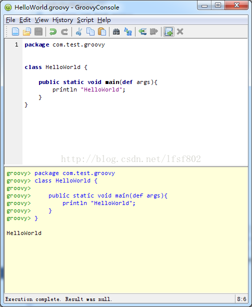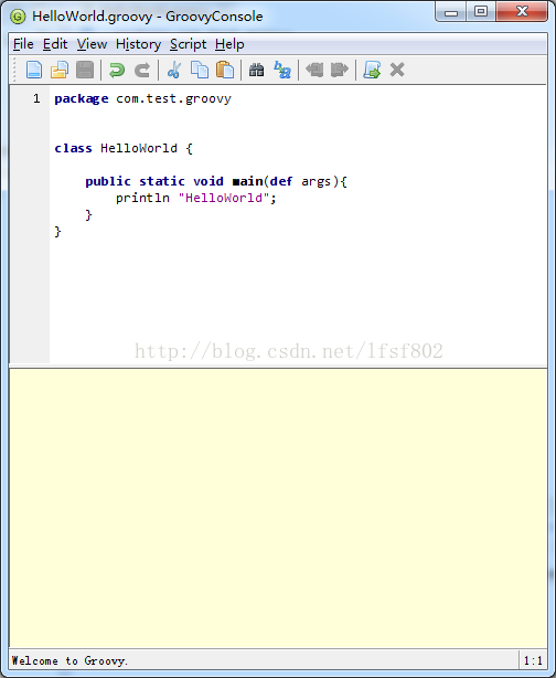 实际上 groovy 语法的简练还体现在,就算整个文件中只有println"Hello World"这一句代码(把除这一句以外的语句删除掉吧),程序也照样能够运行。当然,为了说明groovy 其实就是java,你也可以完全按照java 语法来编写HelloWorld类。