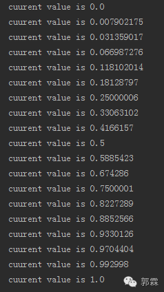 可以看到,这里我们通过addUpdateListener()方法来添加一个动画的监听器,在动画执行的过程中会不断地进行回调,我们只需要在回调方法当中将当前的值取出并打印出来,就可以知道动画有没有真正运行了。运行上述代码,控制台打印如下所示: