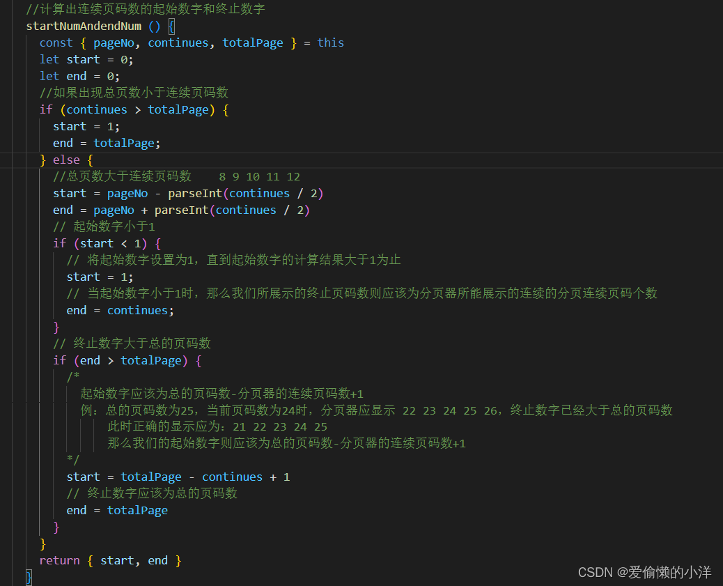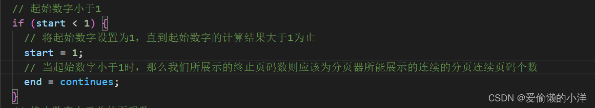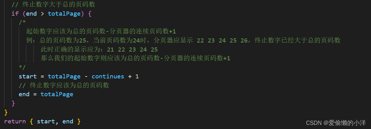 在计算完起始数字和终止数字后,我们要考虑两种情况:①起始数字小于1;②终止数字大于总的页码数(totalPage)