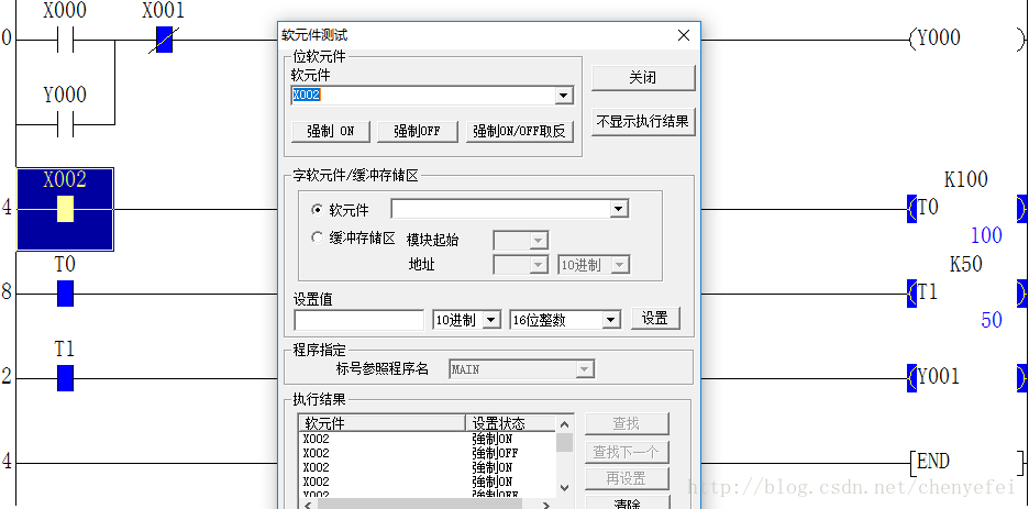 注意:定时器选择-( )- 输入T0 K100即可(其中T与K有空格的) , 重新编辑程序变换后,需要重新梯形图逻辑测试启动,才能正确的仿真模拟结果。
