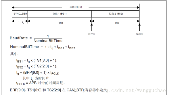 1 位分为 4 个段,每个段又由若干个 Tq 构成,这称为位时序。