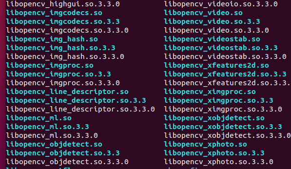 make结束后,后面的make install 一帆风顺。完成后在/usr/local/lib目录下看到生成的库文件,如下图,说明opencv库已经搞好了。