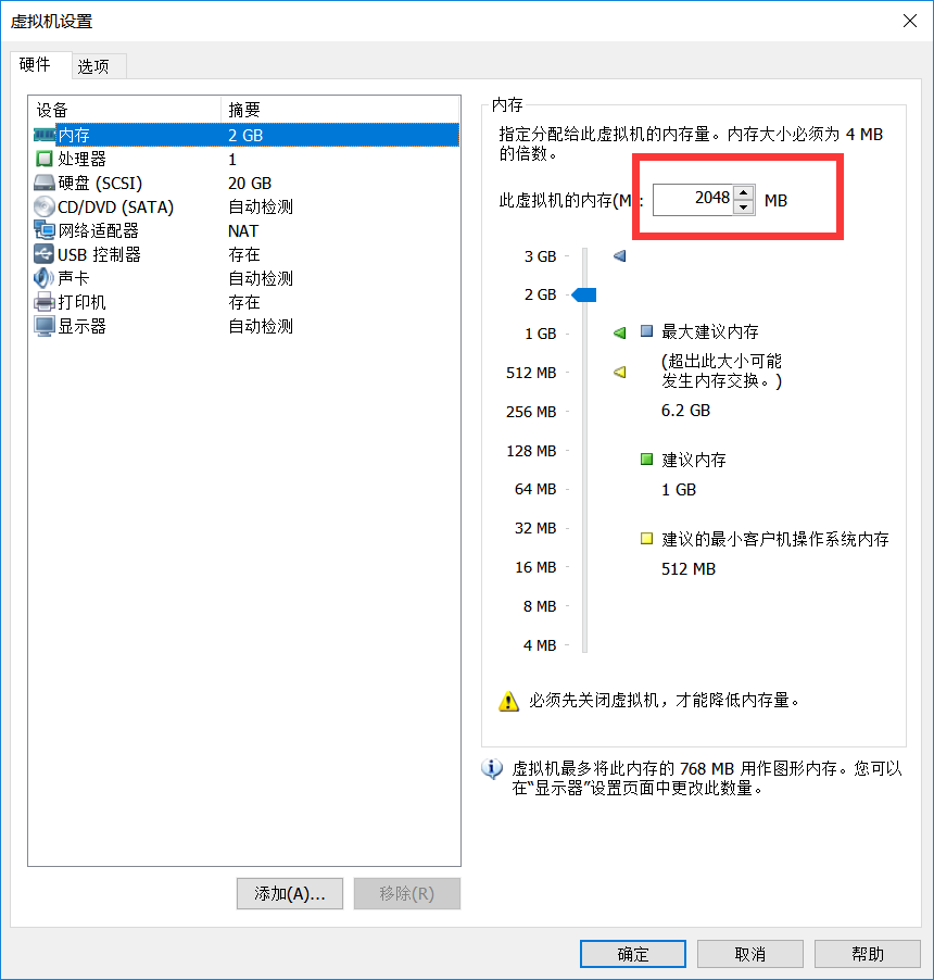 点击虚拟机-设置-内存,将内存改为2048MB,问题解决