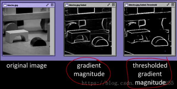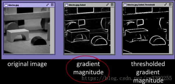 那么Sobel梯度就是由Sx和Sy的应用组成来得到这些值。