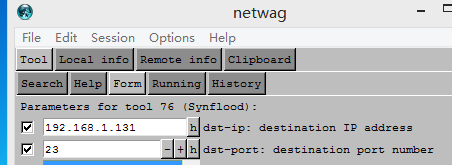 理解基于网络协议的攻击原理, 掌握一些基于网络协议攻击的方法, 掌握 netwox/netwag 的使用方法。 实验环境: netwox/netwag 工具, wireshark 工具, Telnet 服务器, Telnet 客户端
