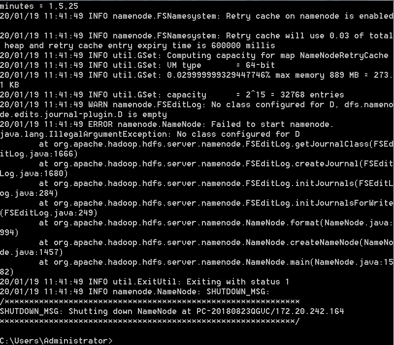 以上就是殷勤未来最近收集整理的关于win7下搭建hadoop环境,出现ERROR namenode.NameNode: Failed to start namenode.的全部内容,更多相关win7下搭建hadoop环境,出现ERROR内容请搜索靠谱客的其他文章。