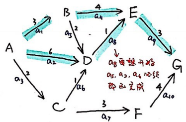 此处的AOE有3条关键路径:bdcg、bdeh和bfh。只有关键路径上的活动同时减少时,才能缩短工期。