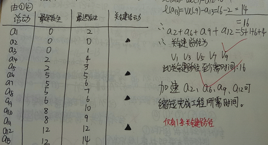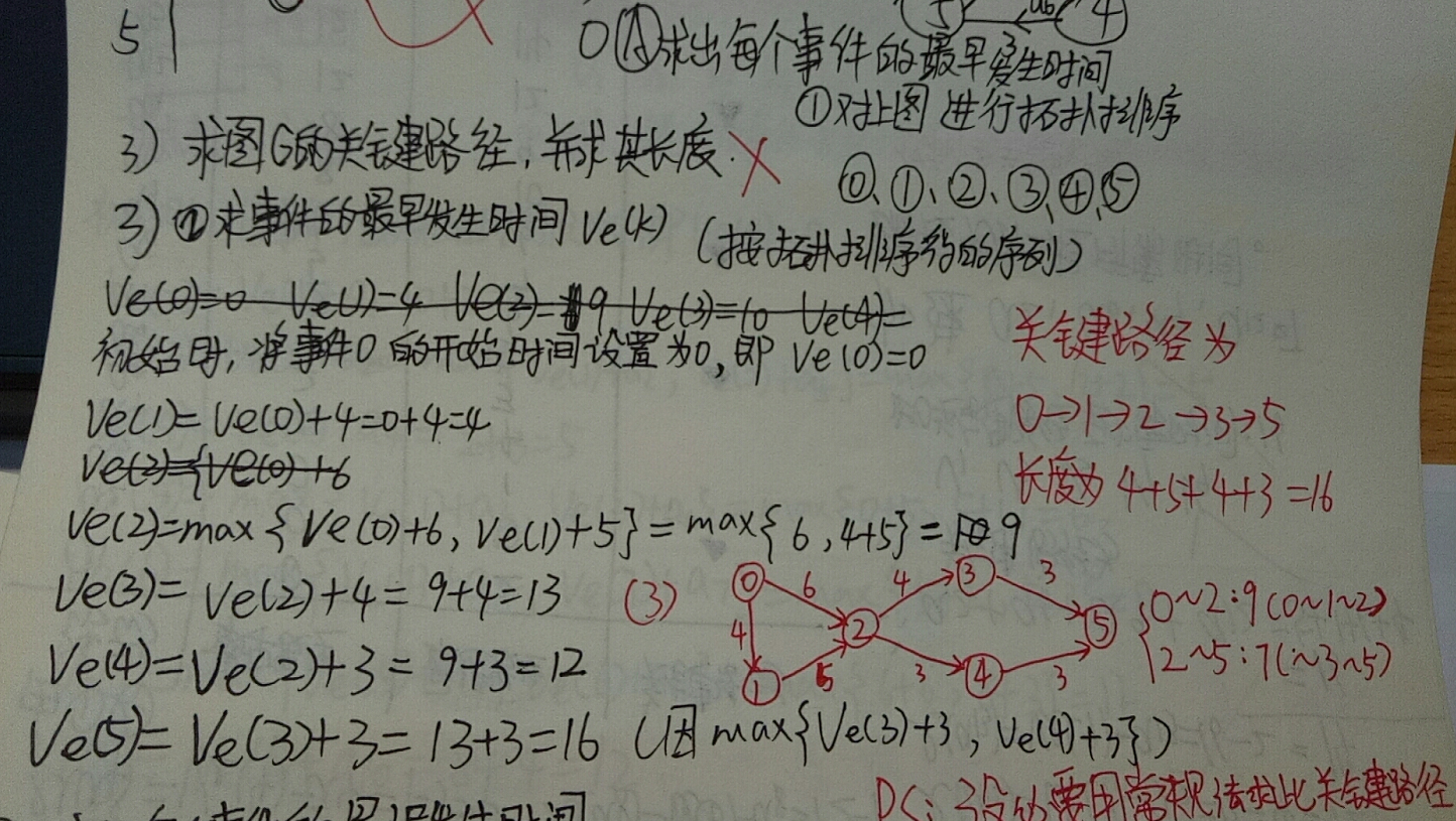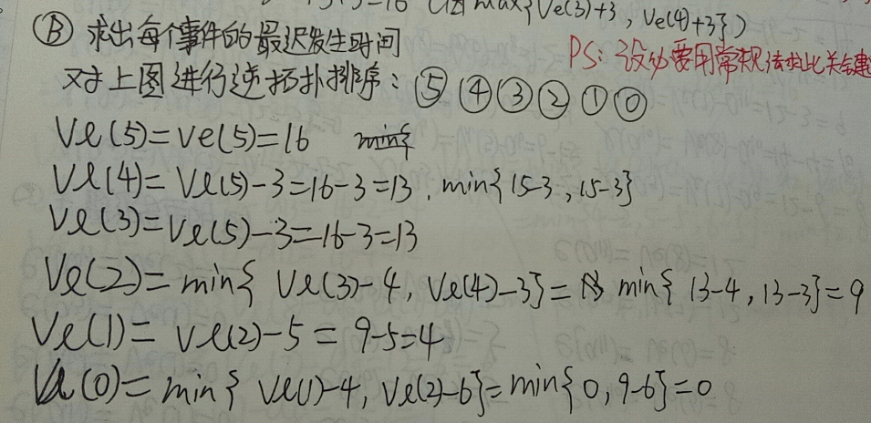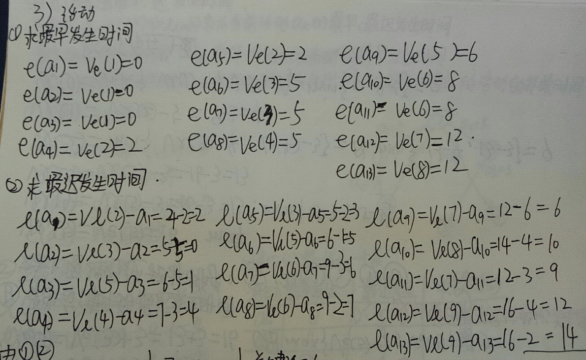 后两条:活动V3->V5最早发生时间是V3时间的最早开始时间,活动V3->V5的最晚开始时间是V5的最晚发生时间-前路径长度。