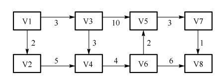 注意:虽然(3)中删去的是V3-V4的边(只是指关键路径V1到V8中),(4)的V1到其他顶点的最短路径是可以包括V3-V4边的。