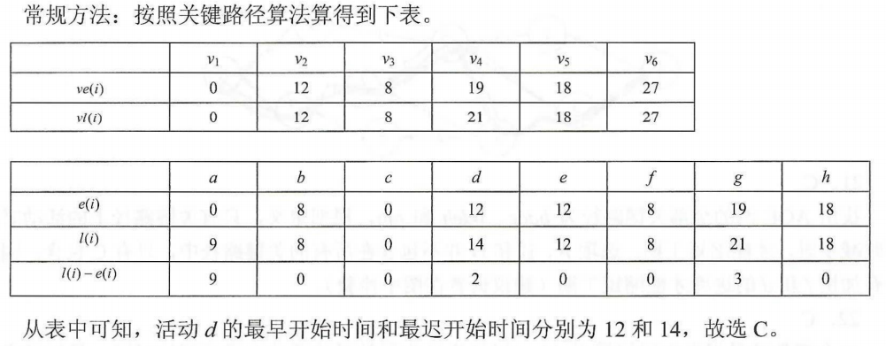 图中关键路径=27=c+b+e+h(简单选择题就求出所有路径长度取max),