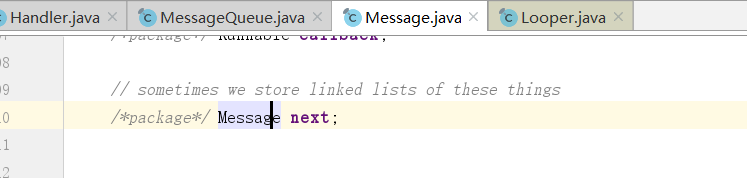 除此之外,我们还要关注一个地方那就是 nativePollOnce(ptr, nextPollTimeoutMillis),这个是一个nativie方法,也是这个next()方法为什么会造成block(堵塞)的原因,由于本文是从java层面来讲解handler,所以这里不展开讲解。对于这个方法,我们需要知道的是他的参数的作用就是通过Native层的MessageQueue阻塞nextPollTimeoutMillis毫秒的时间