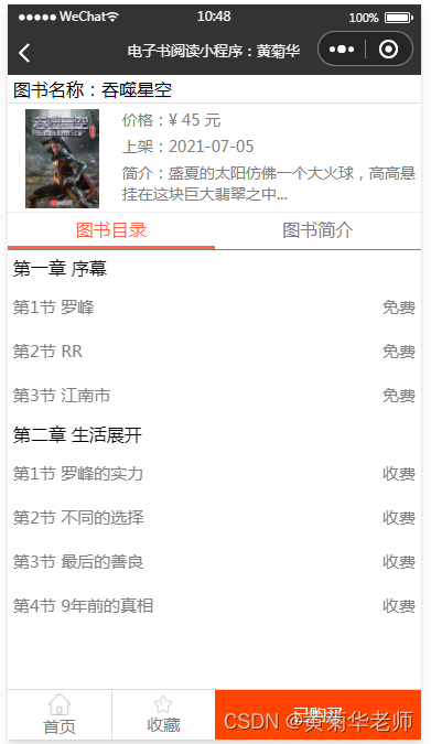 电子书详情:显示对应的电子书介绍内容,支持上一接,下一节,回到目录