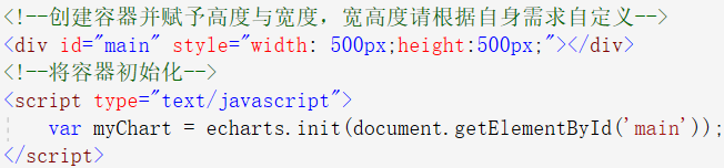 然后在HTML里写一个容器并初始化,这个容器需要一开始赋予高度和宽度,使得初始化的时候将数据带入节点,除非后面在script里使用高度与宽度的参数。如下图