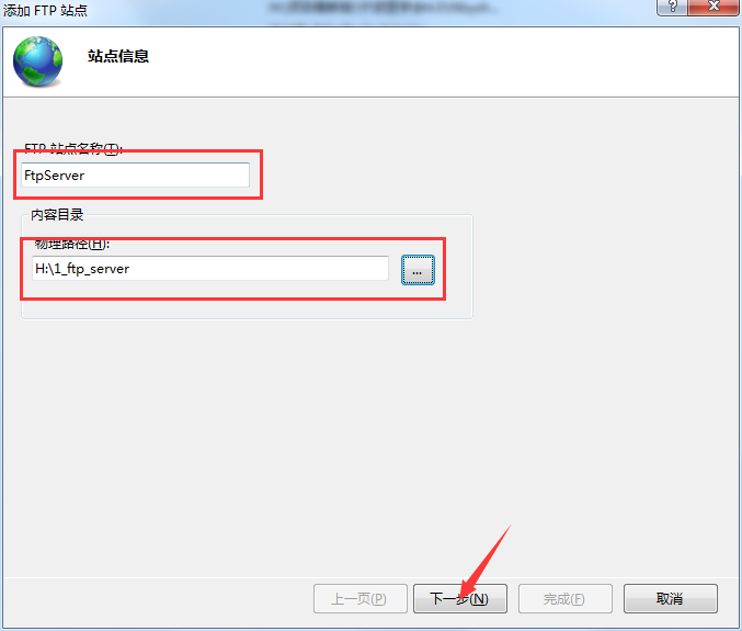 Ftp站点名称和物理路径设置