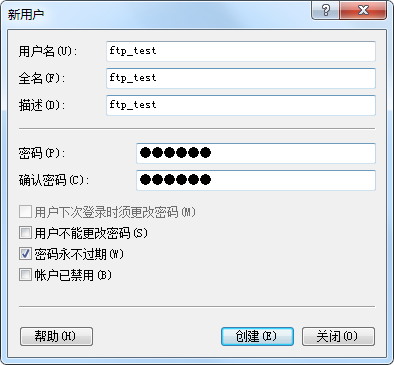 第五步:测试FTP站点(用户及密码验证)