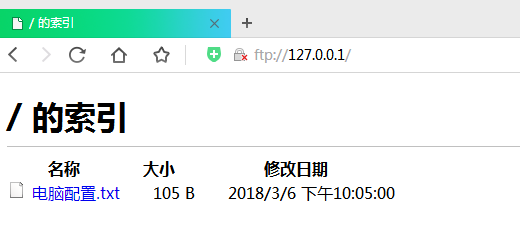 3.2 浏览器或者文件管理器地址栏输入ftp地址(ftp://127.0.0.1) 如果是局域网访问就用局域网IP