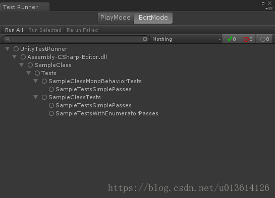 Window/General/Test Runner打开 Test Runner 窗口,可以看到我们写的测试已经被 Unity 识别,如图: