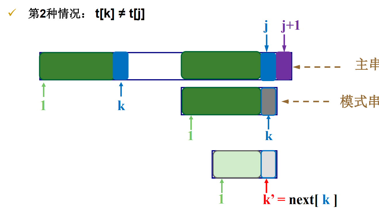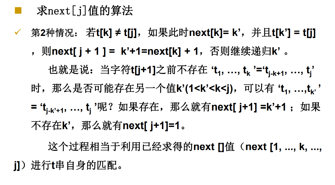 即 mstr【j】 !=mstr【next【j】】,就缩短距离,从前面mstr【0】到mstr【next【j】】的部分再找