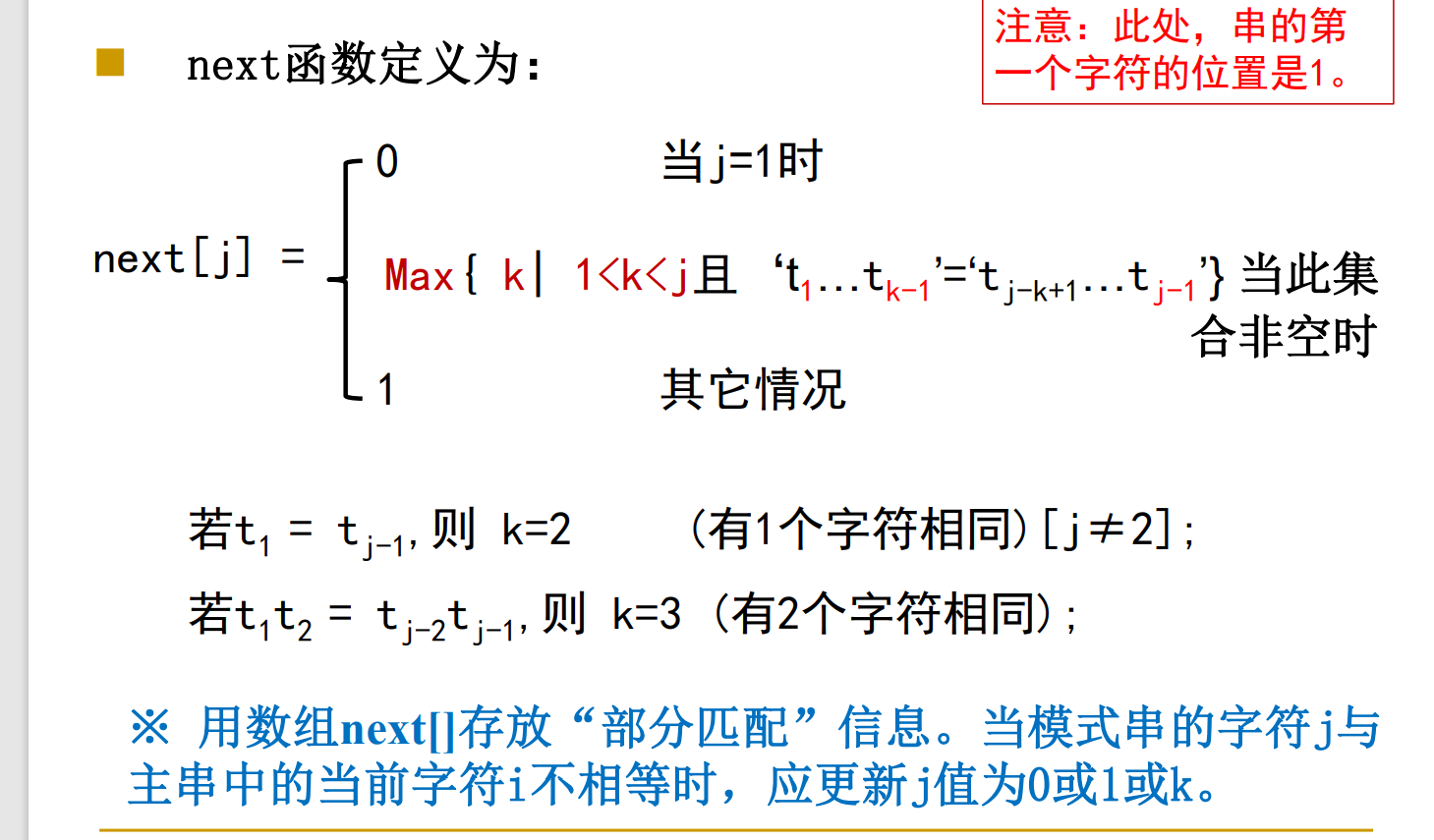 当模式串中某位置 mstr【j】与主串 Mstr【j】不相等时时,对应主串中的位置 Mstr【i】应重新和模式串的 mstr【next【j】】去比较,这样就可以滑动节省时间,特别是模式串长的时候;