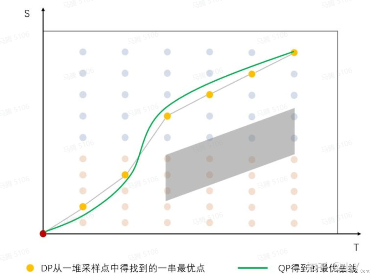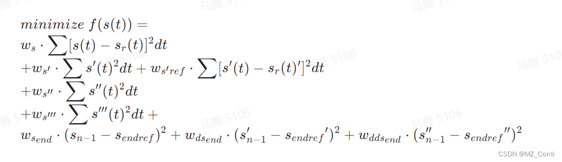 因此,优化的目的就是找到纵向位置的最优离散控制序列,使得在整个ST boundary 时间上的cost 最低,同时也要满足各种约束。因此每个时间点上的纵向位置 即优化的变量。
