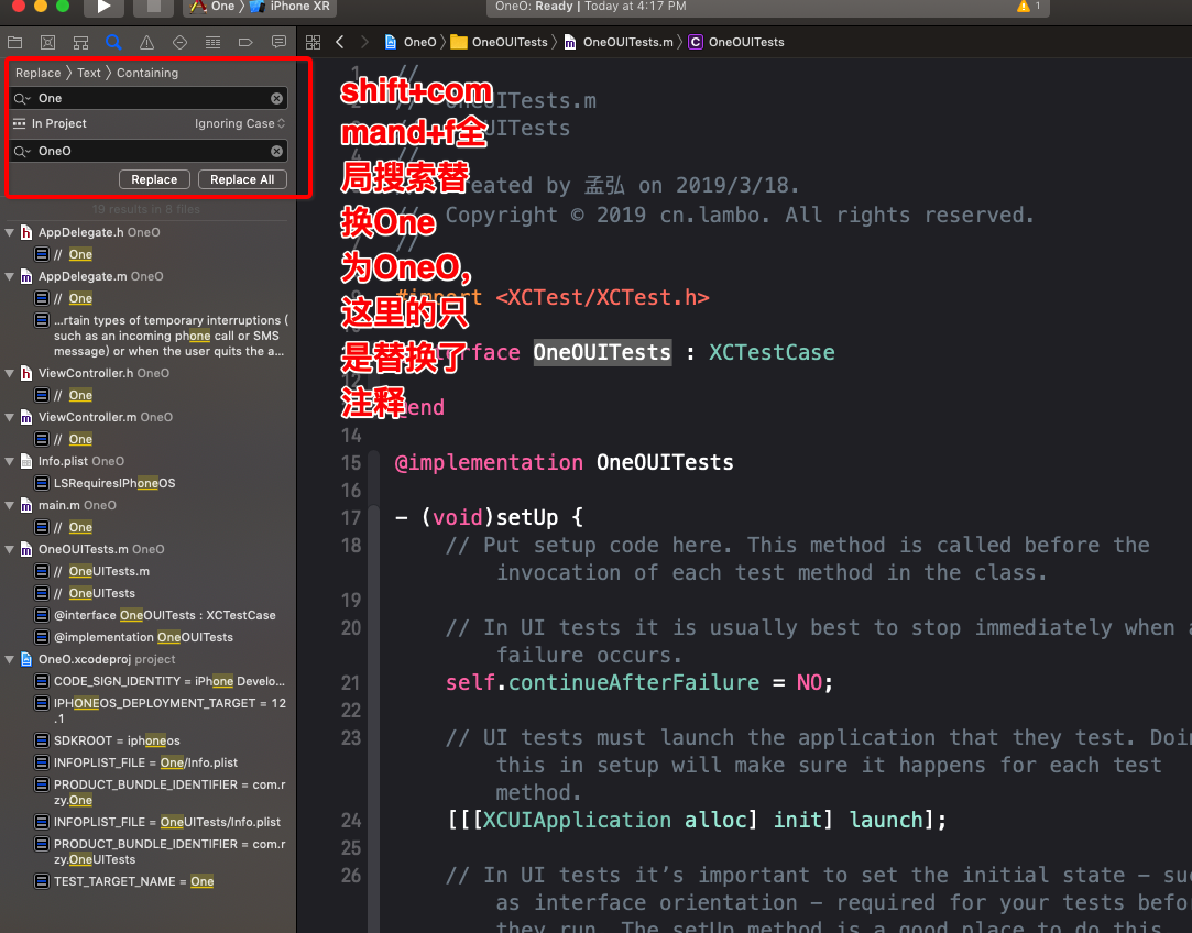 4.command+option+shift+F 调出全局搜索替换页面: